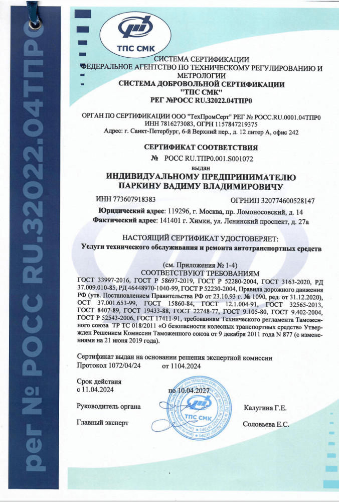 Все работы сертифицированы по ГОСТ-Р.